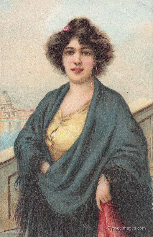 she had a Gorgeous wrap of some special kind of blue color on her for the voyage made very peculiarly to one side like and it was extremely pretty" (U18.674)