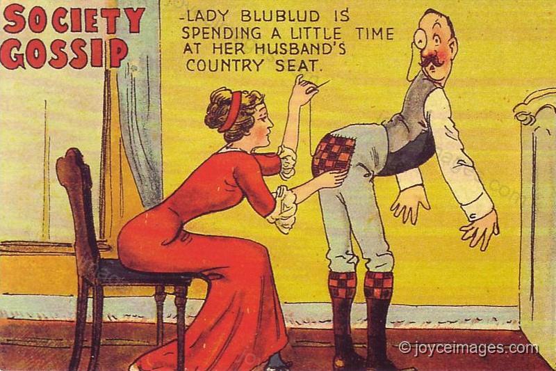 "the pan calling the kettle blackbottom and I had to tell her not to cock her legs up like that on show on the windowsill before all the people passing" (U18.1034)