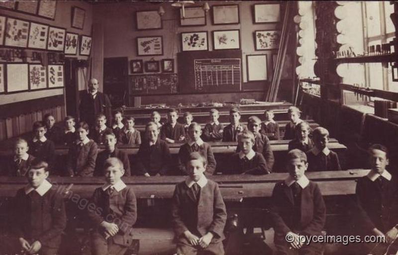 An Edwardian classroom, boys in Eaton suits, that could have been Deasy's.