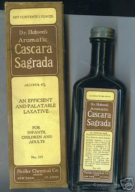 "Hope it's not too big bring on piles again. No, just right. So. Ah! Costive. One tabloid of cascara sagrada." (U4.509)