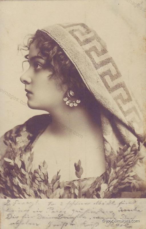 The (Greek) key is a geometrical pattern used by Ancient Greeks in carvings and on pottery. There are many variations on it. You can see a simple Greek key on the scarf of the woman in this PC, and on the head band of the famous Charioteer statue in Delphi. Although its meaning is unknown, it has been postulated that the Greek key may be connected to the labyrinth where Theseus fought the Minotaur.
