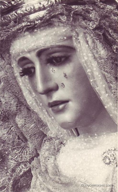On the evening of August 21st 1879, 15 people (5-75 year old, the first being Mary McLoughlin, housekeeper to Archdeacon Kavanagh), witnessed an apparition of the Blessed Virgin Mary (BVM), St Joseph, and St John the Evangelist at the south gable end of the Church of St John the Baptist in Knock. The BVM was described as life-size, standing about 2 feet above the ground. She wore a white cloak, a crown, and over the crown a rose. St Joseph stood on her right. He also wore white robes, his head bent in respect toward the BVM, and appeared somewhat aged. St John stood to the left of the BVM. He wore a long robe and a mitre, was partly turned away from the others, and appeared to be preaching. He held open a large book in his left hand, and his right hand was raised. Behind the figures, to the left of St John, was an altar with a lamb with a cross (Agnus Dei). Angels hovered around the altar the whole time. The witnesses stood in the pouring rain for some 2 hours reciting the Rosary. An ecclesiastical Commission of Inquiry was established by the Archbishop of Tuam, Most Rev. Dr. John MacHale. The Commission's verdict deemed the testimony of all the witnesses trustworthy and satisfactory. This card (1881), issued by St Joseph's Union in NY, was sold as a fundraiser for its 'Homeless Child' project.