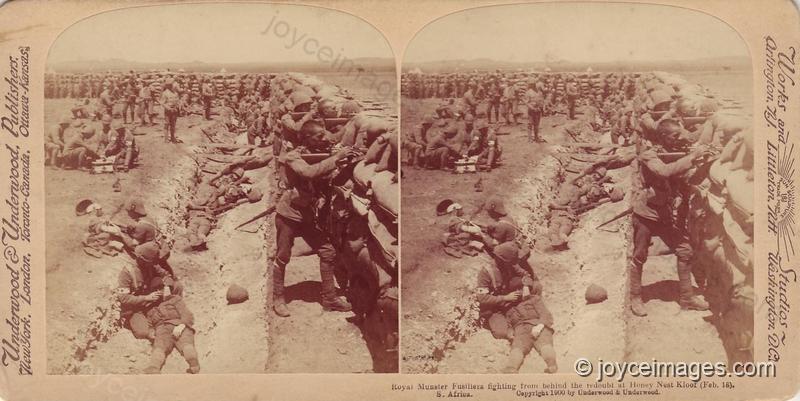 There were many Irish troops fighting for the British army in the Boer war. This SV shows the Royal Munster Fusiliers at the battle of Honey Nest Kloof, 1900.