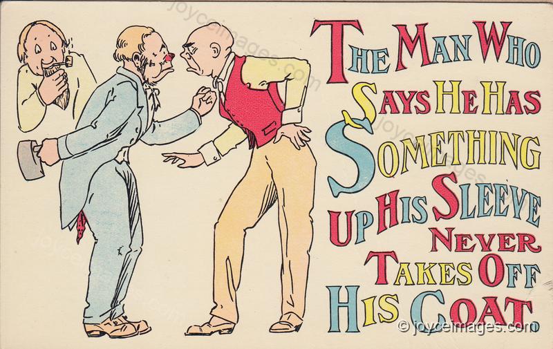 - Lord love a duck, he said, look at what I'm standing drinks to! Cold water and gingerpop! Two fellows that would suck whisky off a sore leg." (U8.1005)